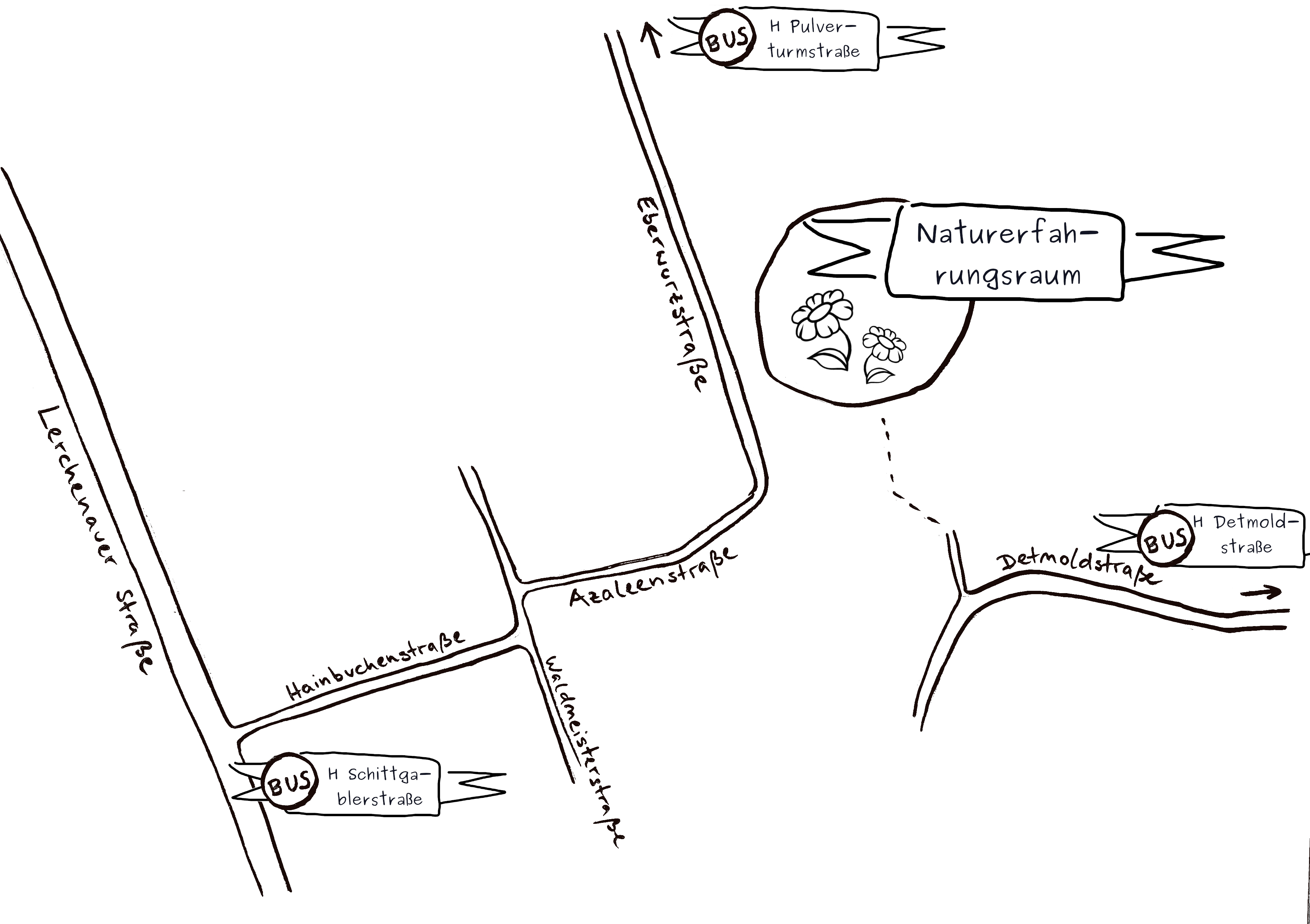 Der Veranstaltungsort ist der Naturerfahrungsraum Eberwurzstraße in der Lerchenau. Die nächste Haltestelle ist die Schittgablerstraße. Eine genaue Anreiseskizze findet Ihr hier.