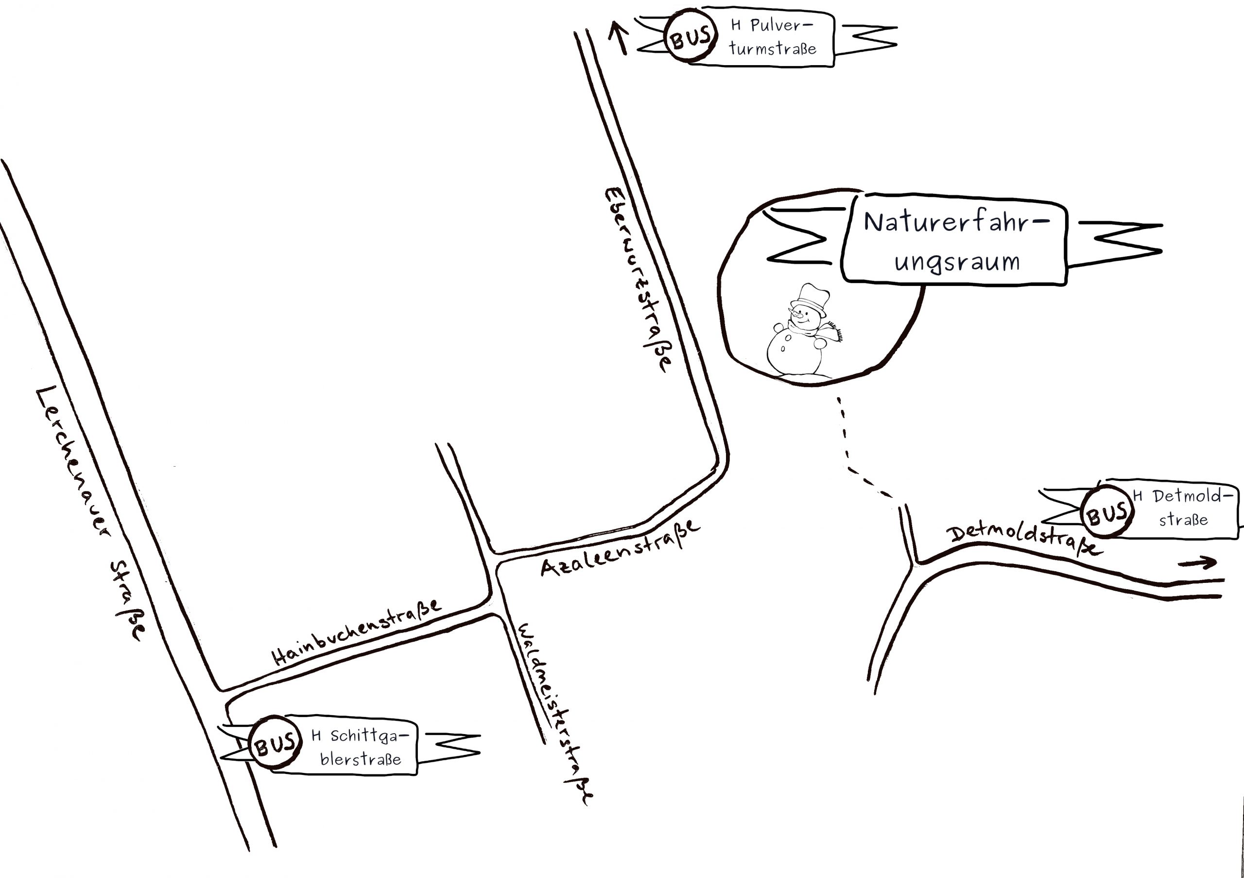 Der Veranstaltungsort ist der Naturerlebnisraum Eberwurzstraße in der Lerchenau. Die nächste Haltestelle ist die Schittgablerstraße. Eine genaue Anreiseskizze findet Ihr hier.