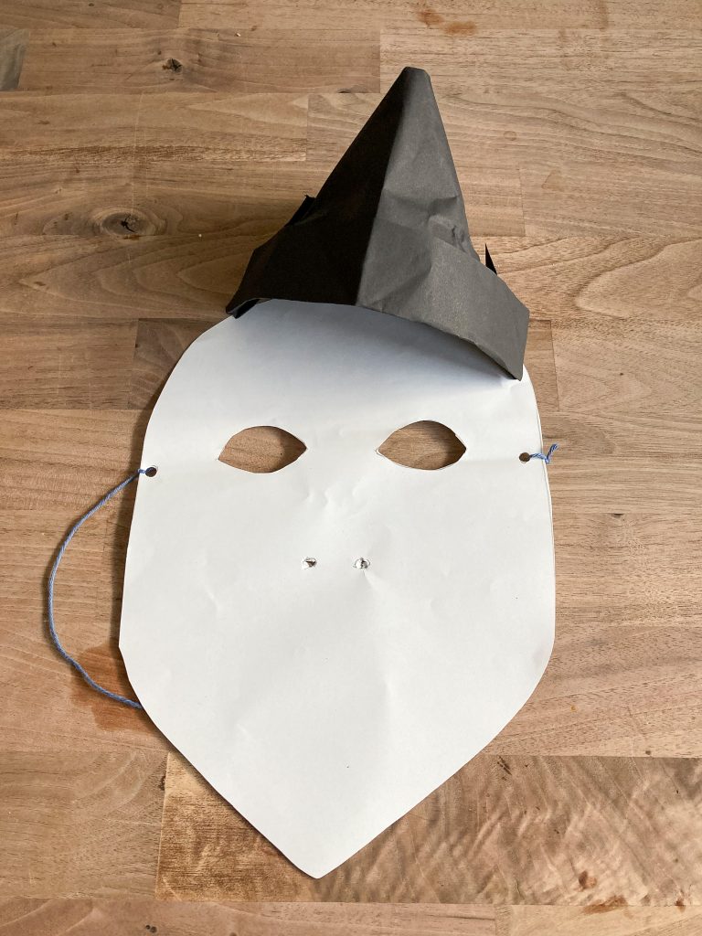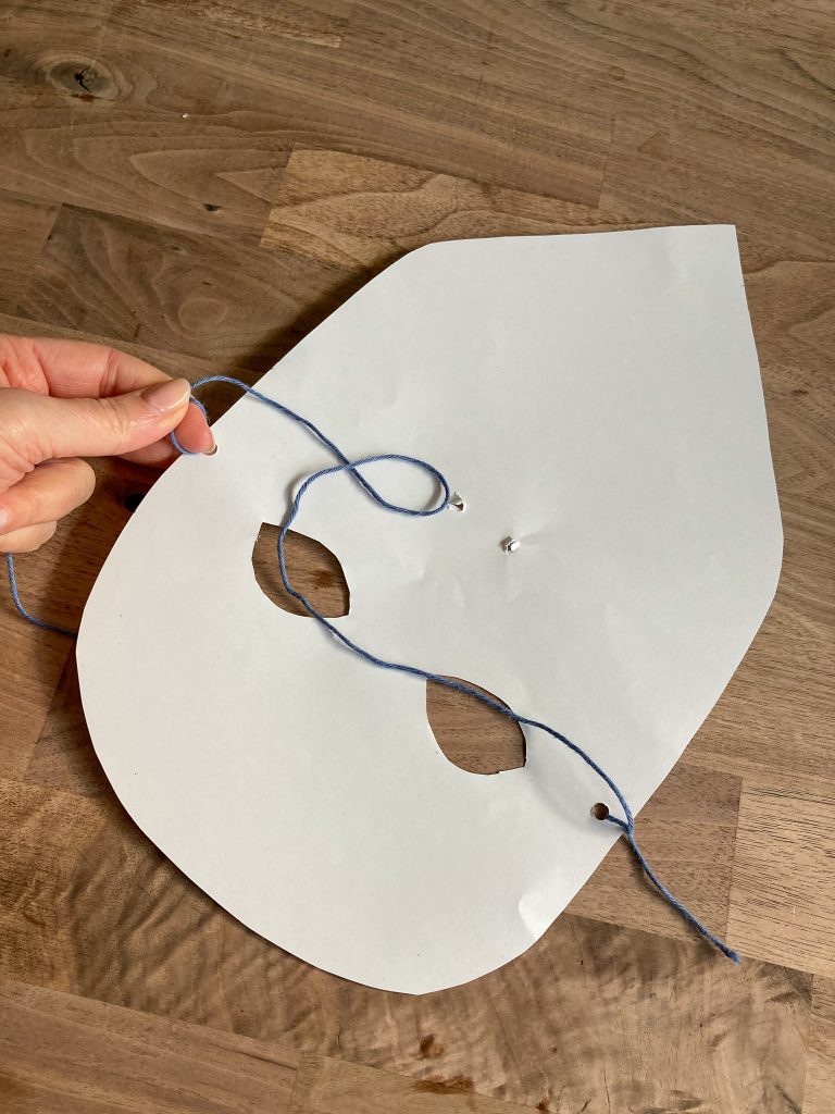 Zudem benötigt Ihr zwei Löcher an der linken und rechten Seite, durch die Ihr eine Schnur oder ein Band Eurer Wahl ziehen und die Maske an Eurem Kopf befestigen könnt.