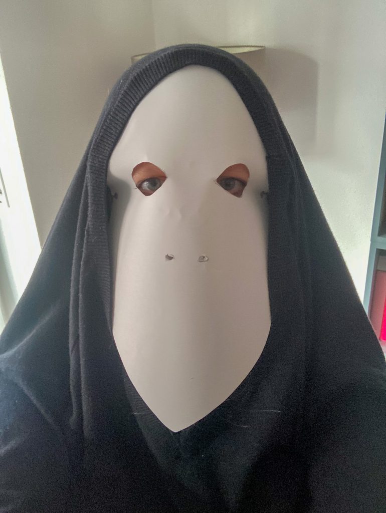 Um das traditionelle Schleier- oder Spitzentuch nachzubilden, könnt Ihr ein schwarzes Shirt so über den Kopf ziehen, dass nur das Gesicht mit der Bauta-Maske zu sehen ist und die Haare unter dem Shirt versteckt bleiben.