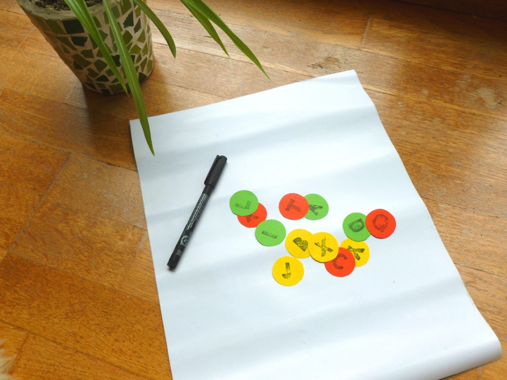 Dazu kannst Du alle Buchstaben aufschreiben und ausschneiden (oder aus einem Scrabble-Spiel leihen). Dann könnt Ihr reihum einen Buchstaben ziehen und Euch etwas ausdenken, was Euch glücklich und dankbar macht und mit diesem Buchstaben beginnt.