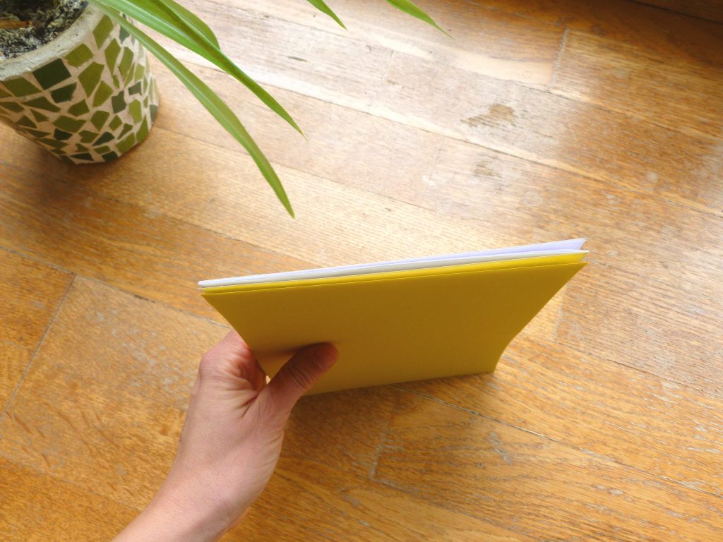 6. Jetzt kannst Du das Buch wenden, aber so, dass die Reihenfolge der Löcher gleich bleibt (also nicht wie Du ein Buch umblätterst, sondern über die Oberkante)!