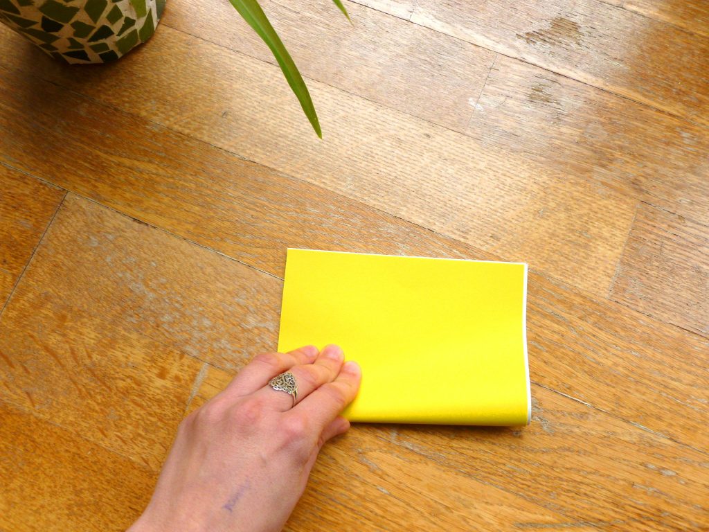 2. Jetzt faltest Du die Blätter einmal, so dass die Ecken genau aufeinander treffen.