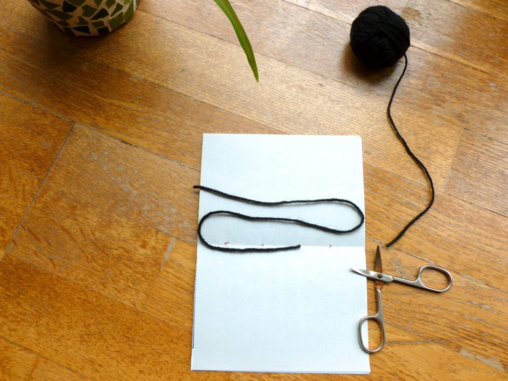 4. Schneide Dir jetzt ein Stück Faden zurecht. Es sollte ungefähr 2 ½ mal so lang sein wie Deine Mittellinie.