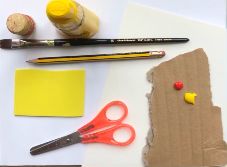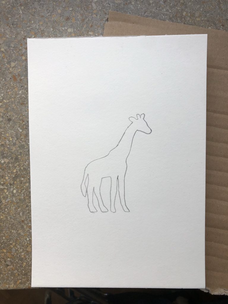 Erstmal überlegt Ihr, was Ihr drucken möchtet und zeichnet es mit dem Bleistift vor. Diese Form beklebt Ihr nun mit Schnipseln, die Ihr aus dem Moosgummi schneidet.
