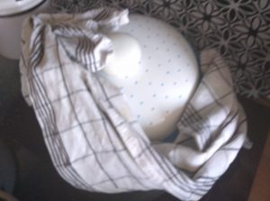 Dann lasst Ihr nur noch auf einem (Papier-)Tuch ein bisschen Öl tropfen und reibt die Eier damit ein. So glänzen sie schön.