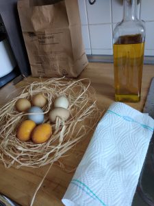 - Etwas zum Nestchen-Bauen für die Eier (Stroh, Wolle oder Ähnliches)