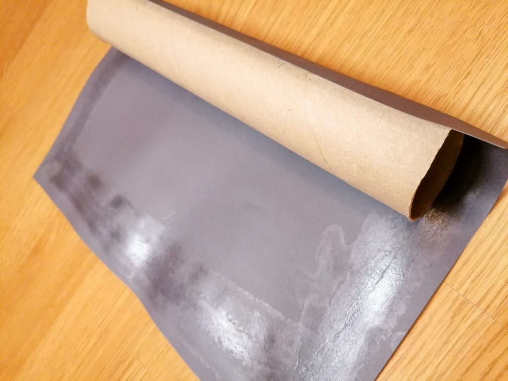 3. Nehmt jetzt die Küchenpapierrolle und rollt diese in das Tonpapier ein. Das Papier sollte jetzt an der Rolle kleben.