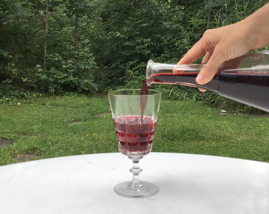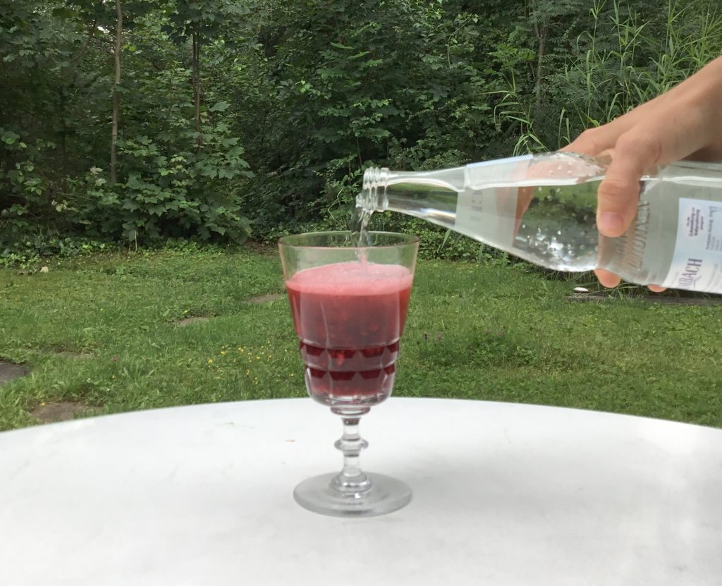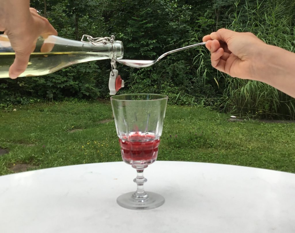 Jetzt füllst Du das Glas zur Hälfte mit Johannisbeernektar…