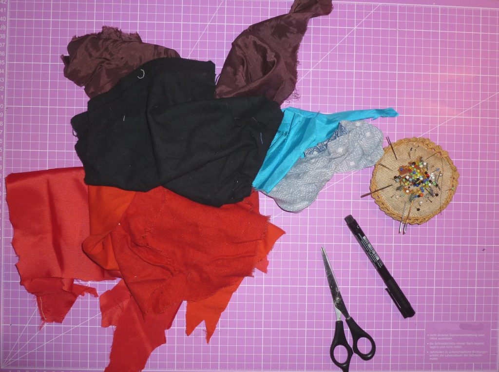 Du musst nicht extra Stoff kaufen, Du brauchst nur ein paar Stoffreste. Oder vielleicht habt Ihr auch alte, kaputte Klamotten zuhause, die Ihr sonst nur wegwerfen würdet.