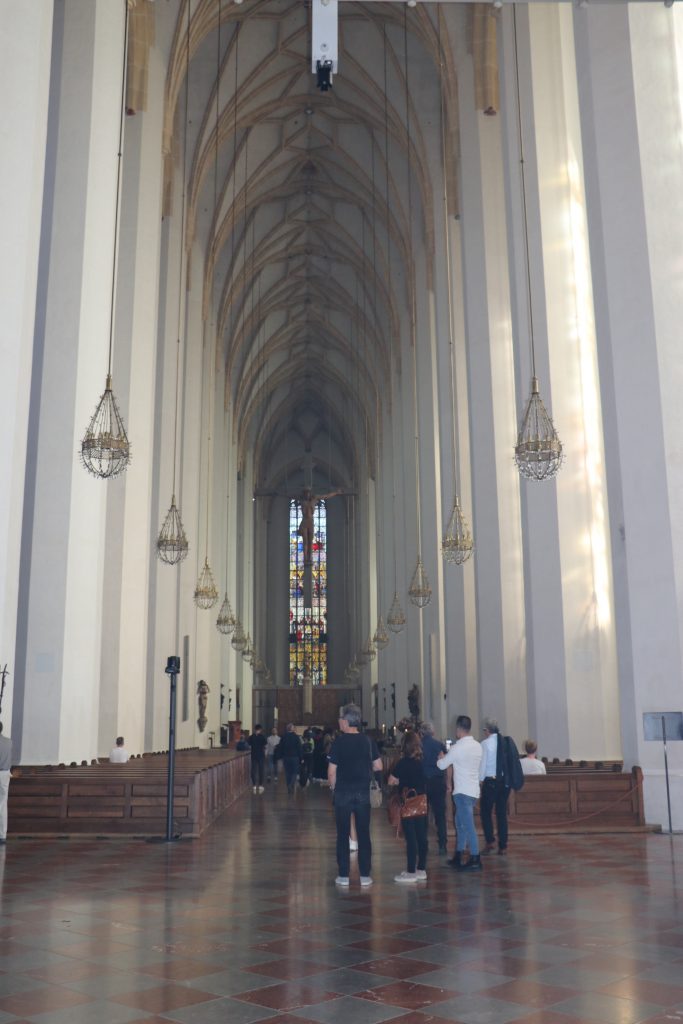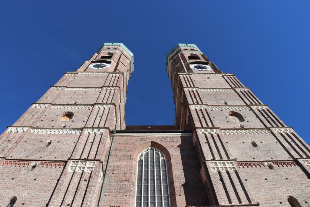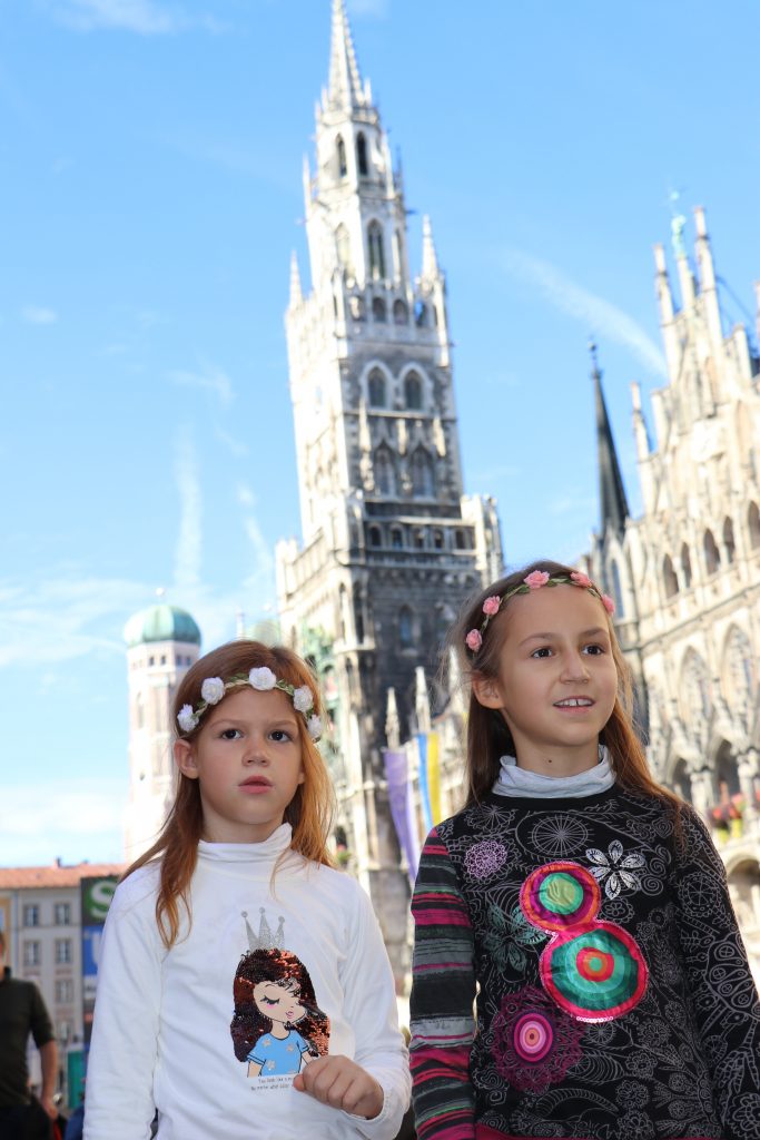Diabolisch wird es bei der nächsten Station. Die Mädchen finden sich vor dem Wahrzeihen von München – die Frauenkirche. Die Türme sind fast hundert Meter hoch.