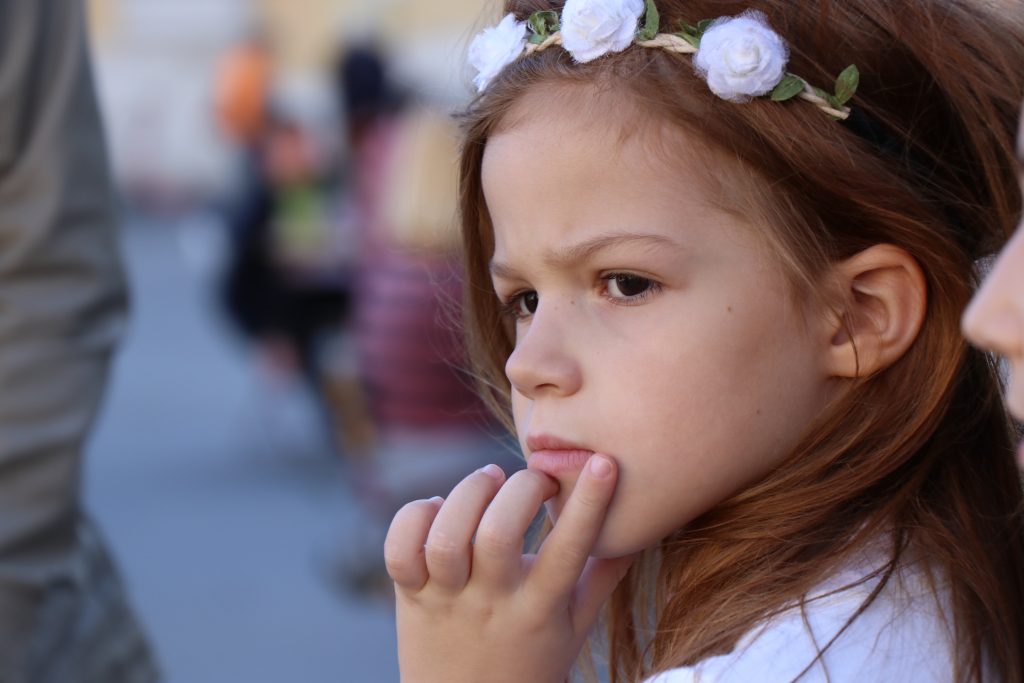 Gemeinsam mit ihren Eltern machen sie eine Stadtführung.