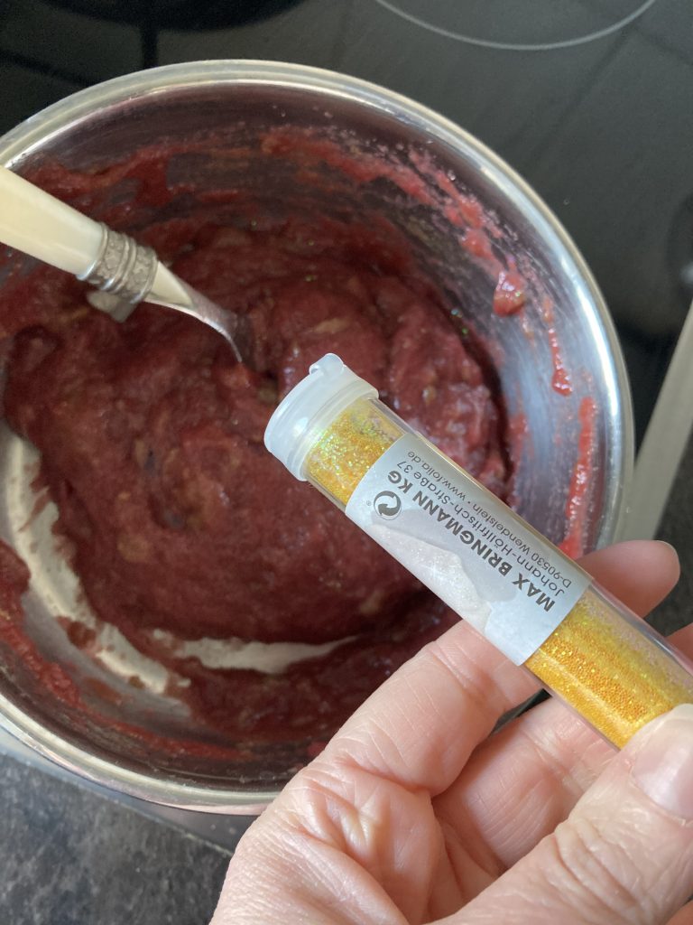 - Lebensmittelfarbe und/oder Glitzerpulver