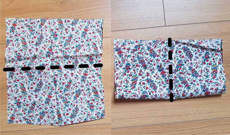 Als erstes wollen wir einen runden Kreis ausschneiden. Falte dazu den Stoff zwei mal in der Mitte…