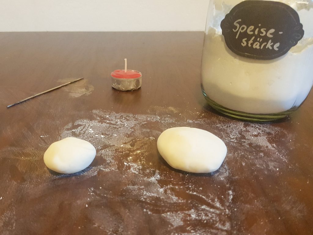 3. Knetet die Masse gut durch und teilt sie in zwei Teile, einen größeren und einen kleineren.