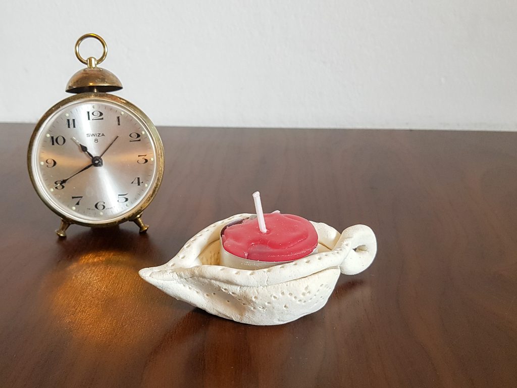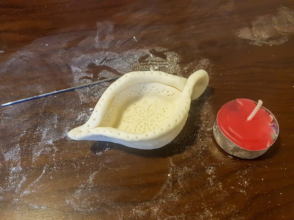 Wir basteln heute eine hübsche Diwali-Leuchte. Traditionell sind sie aus Ton oder Porzellan, aber Ihr könnt auch eine aus ganz einfacher Knetmasse basteln, weil wir sie statt mit Öl mit einem Teelicht zum Leuchten bringen werden.