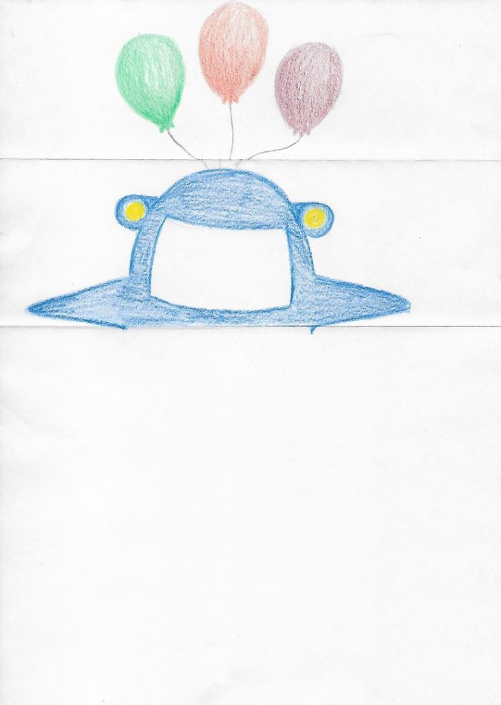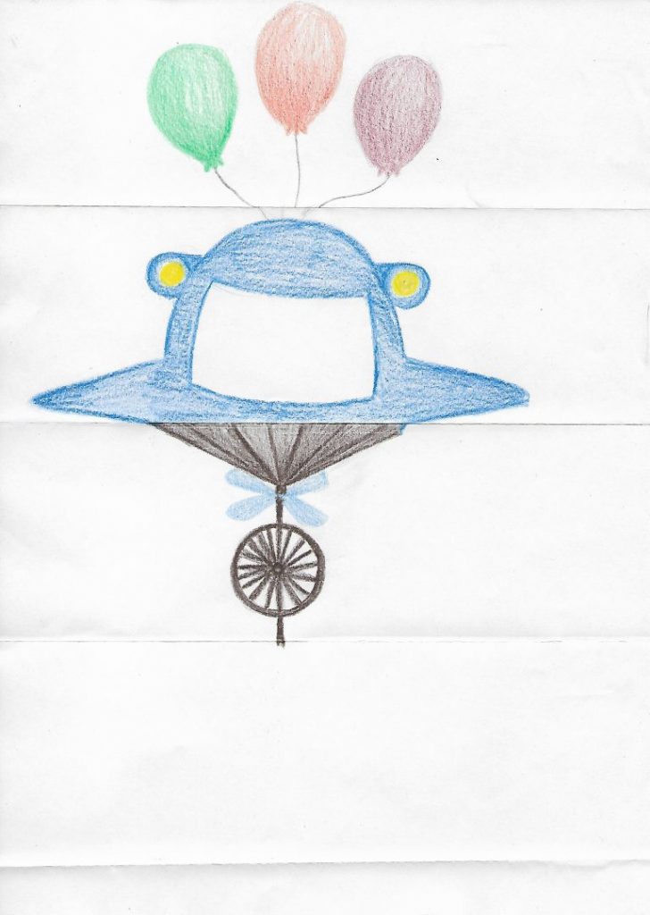 Eine*r von Euch beginnt und malt den obersten Teil Eures Fliwatüüts. Danach wird dieser Teil abgeknickt, sodass die nächste Person nicht sehen kann, was davor gemalt wurde. Das geht dann immer so weiter: Jemand malt und knickt das gemalte dann ab und gibt das Blatt weiter.