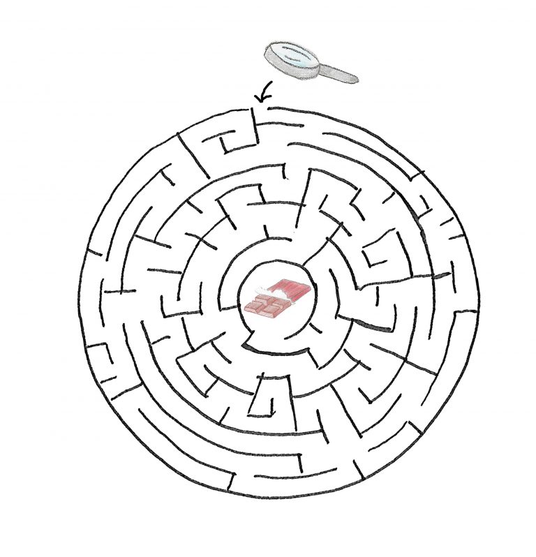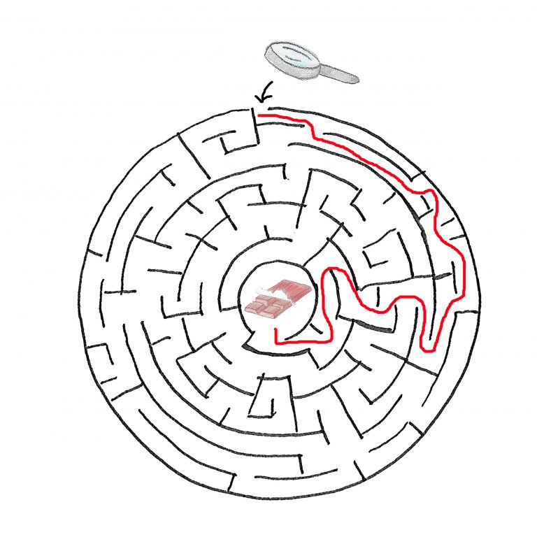 Jelly hat in dem ganzen Chaos ihre Lieblingsschokolade verloren. Könnt Ihr ihr dabei helfen, sie wiederzufinden? Findet den richtigen Weg zur Schokolade. Die Lösung seht Ihr weiter unten.