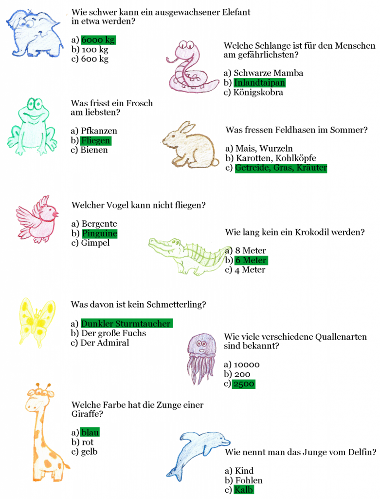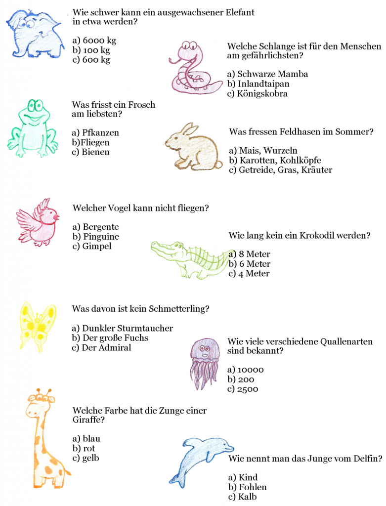 Habt Ihr das Buch gelesen? Dann wisst Ihr bestimmt schon mehr über das ein oder andere Tier!