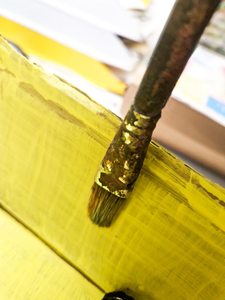 1. Zuerst malt Ihr die Innenseite Eures Kartons an und lasst die Farbe trocknen.