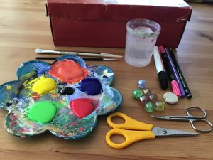 Zum Schluss klebt Ihr nur noch die Pappe in den Deckel legt die Murmeln hinein.