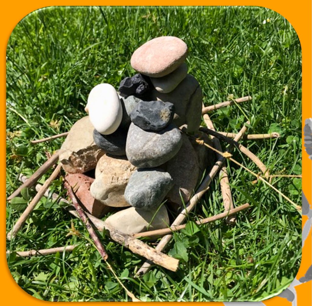 Bei diesem Spiel könnt Ihr eine möglichst hohe Pyramide bauen. Ihr könnt es zu zweit oder mit noch mehr Spieler*innen spielen. Sammelt zuerst einige Steine. Diesie können groß oder klein, rund oder eckig sein. Die Spieler*innen legen nun reihum einen Stein in einen mit Kreide oder Stöcken vorgezeichneten Kreis. Wer den letzten Stein auf die Pyramide legt, bevor sie zusammenfällt, gewinnt!