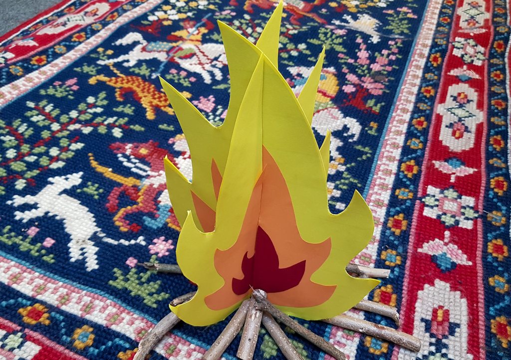 Ein Brauch ist zum Beispiel, vor der Jahreswende über ein Feuer zu springen. Das soll Gesundheit, Energie und Wärme für das neue Jahr bringen. Alle schlechten Energien werden dabei an das Feuer übergeben. Natürlich könnt Ihr kein echtes Lagerfeuer in Eurem Zuhause machen, aber ein gebasteltes Feuer tut es genauso!