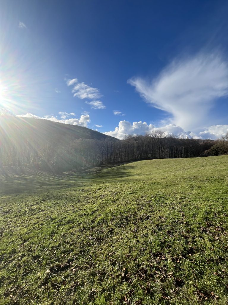 Rosa setzte sich, atmet tief ein, spürte die Erde unter sich, den Himmel über sich, die Luft in ihren Lungen. Und mit dem Ausatmen lässt sie alles Schwere los.