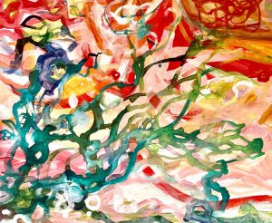 Rosa stellt sich in einen Kreis aus allen Spuren der letzten Nächte: bunte, schwere, goldene, mutige, dankbare.