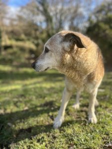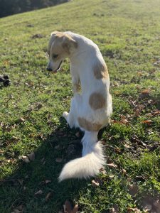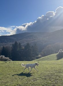Für uns ist dieses Tier Rosa: Eine große, weiße Hündin mit einer erhobenen Rute und drei goldenen Punkten auf dem Rücken. Diese Punkte glitzern nicht nur, sie erzählen: