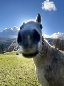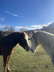 Rosa begegnet zwei Pferden, die unsicher waren.