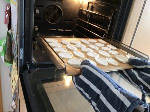 Das Blech soll dann am besten ein Erwachsener für 1,5 Stunden bei 80 Grad Ober/Unterhitze