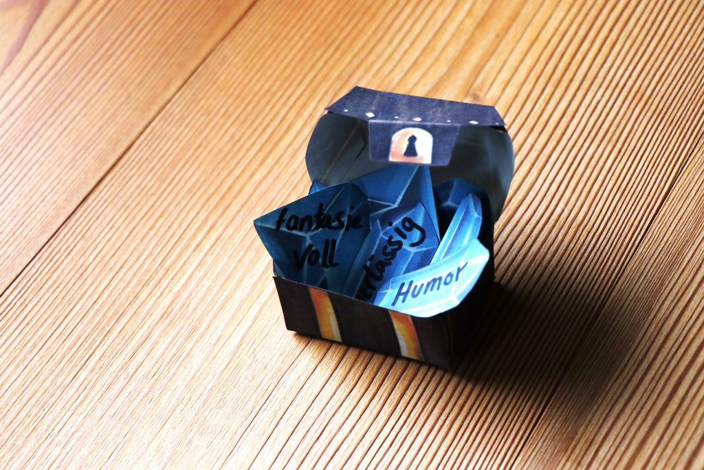 Diese Schatztruhe der guten Eigenschaften soll Dich genau in diesen Momenten daran erinnern, wie viele Talente und gute Eigenschaften jederzeit in Dir stecken. Und wenn Du Dich daran erinnerst, wird es Dir sogleich besser gehen. Stell sie an einen guten Platz, wo Du sie bei Bedarf öffnen kannst.