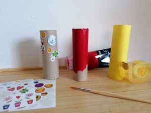 2. Für die Stiftehalter braucht Ihr die Klopapierrollen. Hier könnt Ihr verschiedene Sachen ausprobieren: