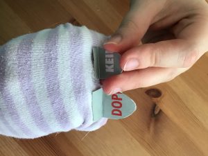 Hier eine kleine Anleitung, wie Ihr diese lustige Sockenpuppe ganz einfach zu Hause nachbasteln könnt.