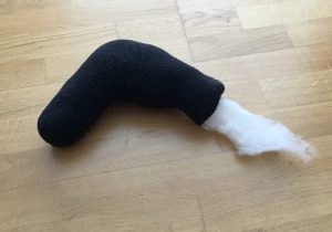 Als erstes stopft Ihr die Socke mit Euerm Füllmaterial aus. Das wird der Pferdekopf.