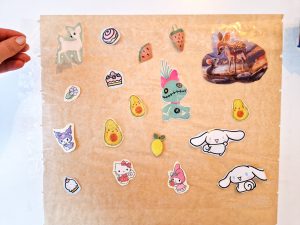 5. Zum Schluss zieht Ihr das Backpapier auf der Rückseite ab – und fertig ist Euer Sticker. Viel Spaß beim Kleben und Tauschen!