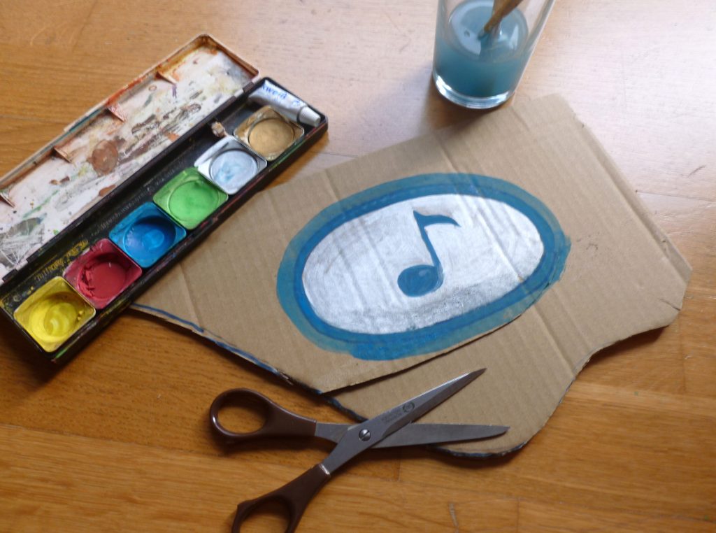 Ein*e Superheld*in braucht ein Logo, damit er oder sie gleich erkannt wird: Male Dir ein Logo mit Deinem Superkraft-Symbol auf Deinen Karton und schneide es aus. Die Größe kannst Du frei wählen – Du solltest es Dir aber nachher noch anstecken können.