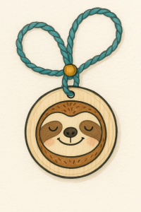 - Schneide es aus, mach ein Loch oben hinein, zieh eine Schnur durch – fertig ist Dein Faultier-Medaillon!