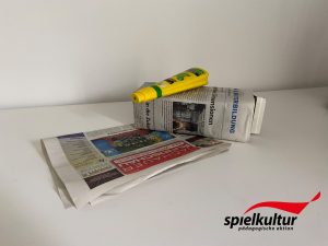Klebt die Zeitung um den Tetrapak.