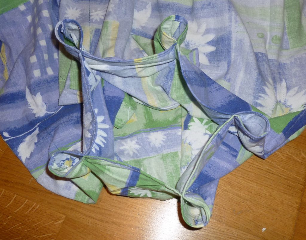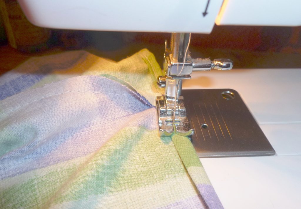 9. Als nächstes musst Du aber noch die Ober- und Unterkanten säumen. Also alle offenen Stoffkanten zwei mal umschlagen und drüber nähen. Jetzt kann hier nichts mehr ausfransen.