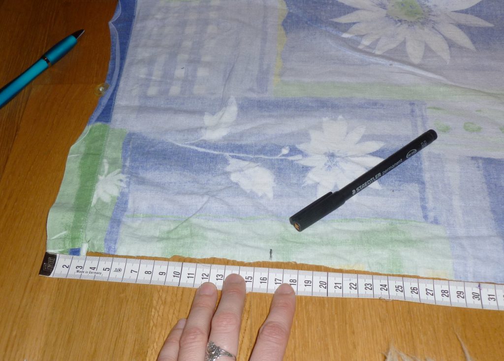 3. Übertrage die Rand-Maße aus der Zeichnung auf Deinen Stoff.