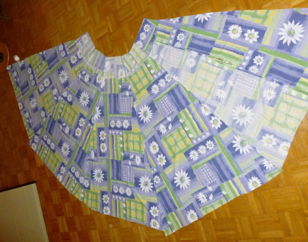 1. Als erstes schneidest Du den Bettbezug an den Seiten auf, so dass Du eine ganz lange Stoffbahn bekommst. Die Knopfleiste (oder der Reißverschluss) bleibt dran!