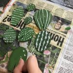 Die Kaktusteile müsst Ihr anschließend mit einer grünen Farbe anmalen. Wenn Ihr möchtet, könnt Ihr auf die grünen Kaktusteile auch noch weiße Details malen, also sämtliche Muster die Euch so einfallen.