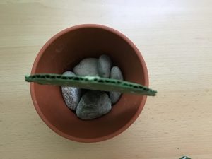 Den Hauptteil des Kaktus steckt Ihr dann in den Blumentopf und füllt den leeren Platz rundherum mit Steinen auf, bis der Kaktus stabil steht.