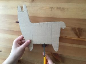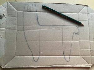 Im ersten Schritt malt Ihr den Umriss Eures Lieblingstiers mit einem Bleistift auf die Pappe. Achtet darauf, dass das Tier einen geraden und breiten Rücken und Bauch hat, dort wird nämlich später die Decke liegen.