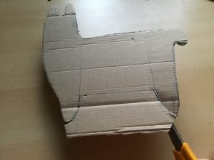 Für den nächsten Schritt teilt Ihr die Länge des Rückens je nach Größe in 4-6 gleich große Abstände ein und zeichnet diese ebenfalls am Bauch Eures Tieres an. An diesen Stellen schneidet Ihr dann die Pappe ein wenig ein.