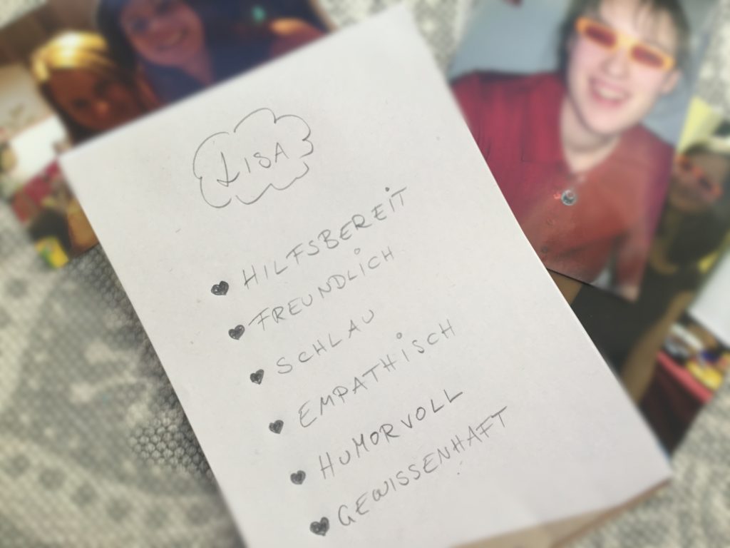 Wir machen zuerst eine kleine Vorübung: Denke an die Menschen, die Du am liebsten magst. Schreibe oder male auf, was Du am allerliebsten an ihnen magst. Manchmal nerven Dich vielleicht auch Deine Lieblingsmenschen, aber darum geht es hier nicht. Nur um das Positive.