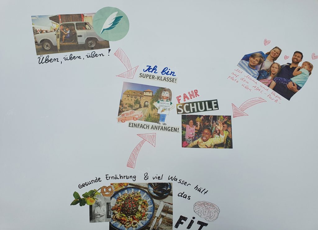 3. Betrachte Deine Ziele und frage Dich, was Dir bei der Umsetzung helfen kann. Das sind Deine guten Unterstützer. Schneide dazu wieder passende Fotos aus Zeitschriften aus oder zeichne sie.