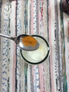 (Vorsicht, Kurkuma Pulver färbt auch die Klamotten, also zieht vielleicht alte Kleidung an).